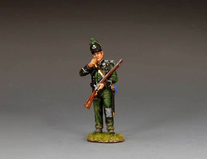 | NA556 “95th Rifleman Biting The Cartridge” Cradling his Baker rifle in his left arm this soldier bites the end off the paper cartridge as he begins to reload. |