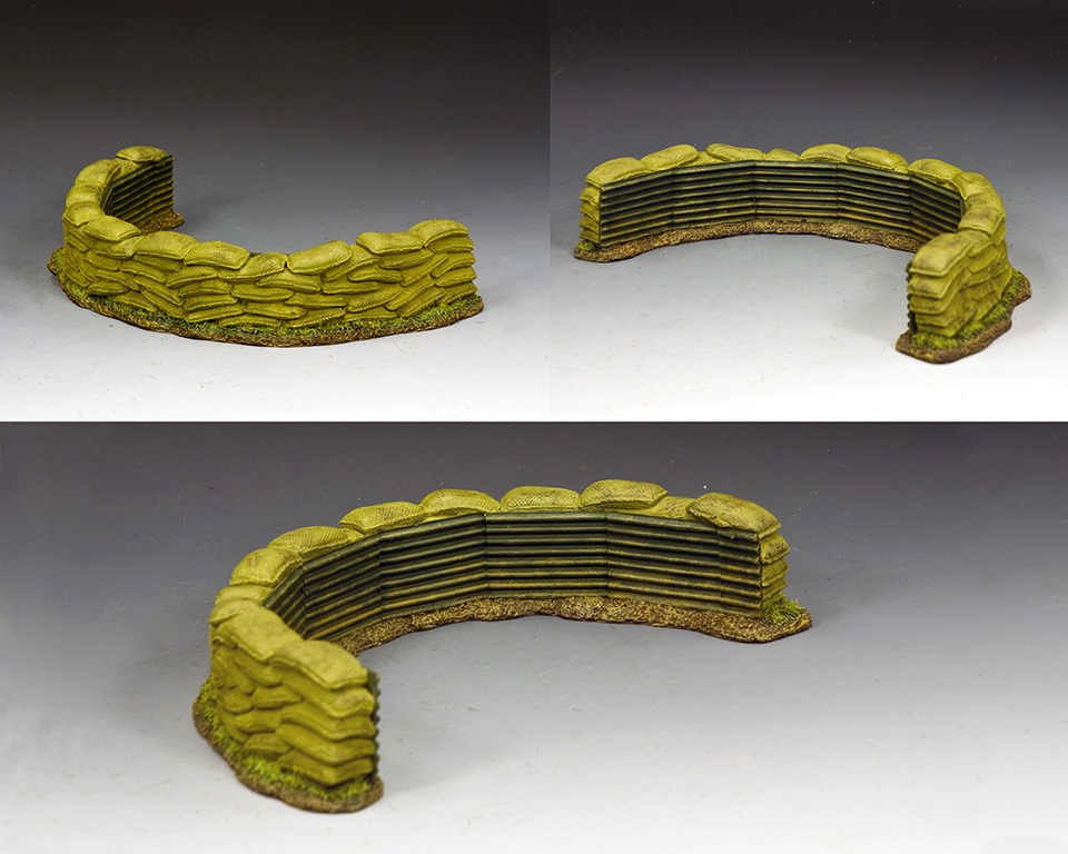 A half-moon sand bag emplacement perfect for setting up one of our 105mm Howitzers either manned by Aussie Gunners or Marine Corps Artillerymen. This useful little display piece made in hard-wearing polystone can also be used to place stores, vehicles or soldiers.
